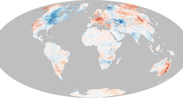 O mapa acima mostra como as temperaturas se desviaram do considerado normal nos vários cantos do planeta. O período analisado é de dezembro de 2013 a fevereiro de 2014. Os trechos em vermelho mostram onde a temperatura média foi até 8 graus centígrados acima da média do século XX. As áreas em azul tiveram temperaturas até 8 graus abaixo da média. A única região mais fria do que o padrão foi o Oeste e o Centro da América do Norte.