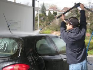 — Agora lavamos apenas com as máquinas de alta pressão, que são mais econômicas.