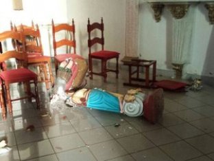 17.07.2014 - Um jovem evangélico de 20 anos foi detido duas vezes nesta quarta-feira (16) destruiu imagens de santos e a estrutura da igreja de Nossa Senhora do Patrocínio do Santíssimo Sacramento, localizada no Centro do município de Sacramento (MG). De acordo com a Polícia Militar, ele alegou que destruiu o local por não acreditar em representações religiosas. Ainda segundo a polícia, um segundo suspeito participou da ação, mas não foi localizado.