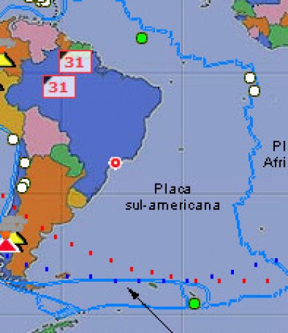 Hoje, três terremotos de 5.4 graus no Sul do Atlântico, 4.8 no Médio Atlântico e 4.7 também no Médio Atlântico.