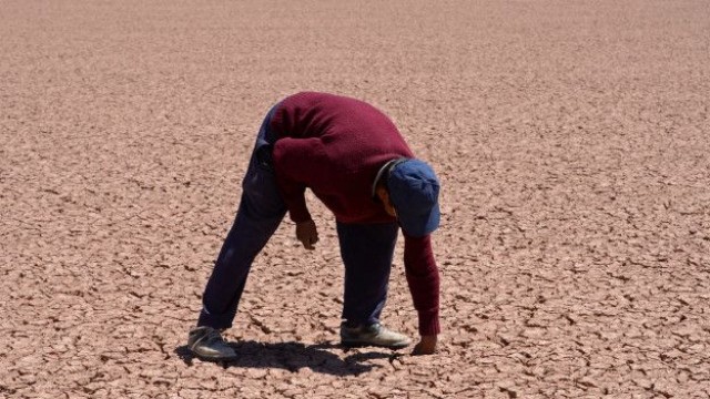 Com essas palavras, o dirigente camponês Valerio Rojas descreveu à agência de notícias Efe a situação do lago Poopó, o segundo maior da Bolívia, atrás do Titicaca.