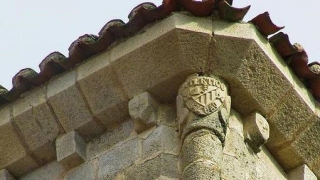 Na Igreja de Santa Maria Maggiore, em Trujillo, Espanha - Colocaram o brasão/escudo do time de futebol do Atlético de Bilbao.
