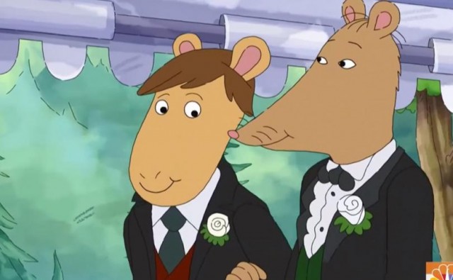 "Arthur", a série animada de longa duração para crianças nos EUA, começou sua vigésima segunda temporada com o "casamento" surpresa de Arthur, com outro homem, o professor de Aardvark, Sr. Ratburn,