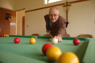 Outra mesa foi colocada na garagem da casa paroquial. Aos mais céticos, o padre assegura que a sinuca tem fins religiosos.